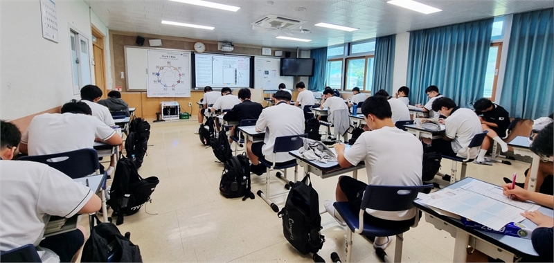 특히, 주목할만한 것은 이번 에니어그램 특강에서는 "자신의 고유성 발견과 적성에 맞는 진로 찾아가기"라는 주제에 맞게 짧은 시간에 1학년 전체 학생들의 만족도를 위해 충북센터 소속으로 활동하고 있는 지역사회 에니어그램 전문 강사들이 함께 그룹 강의로 진행되었다는 것이다. 8월20(수)1학년 1반부터 4반, 8월22일(금)1학년 5반부터 8반 총 182명의 학생이 참여했다. 단체나 기업, 학교, 많은 인원이 동시에 성격 진단을 해야하는 상황에서 검증된 강사들과 함께 짧은 시간에 효율적으로 성격검사를 진행할 수 있다는 것이, 큰 강점이라고 할 수 있다.