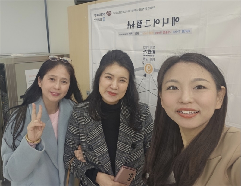 건국대 에니어그램전문가9기 이윤정강사(왼쪽 첫번째), 김성희 강사(중앙)
